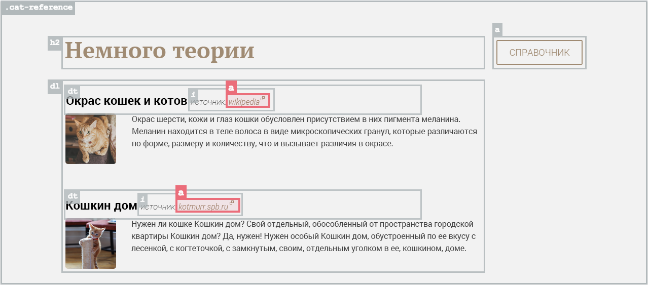 В заголовках статей есть информация об источниках, которая содержит ссылки на другие сайты. Если ссылка ведёт на страницу своего сайта, то её называют внутренней, а если она ведёт на другой сайт, то внешней. Эти внешние ссылки мы сейчас и разметим.