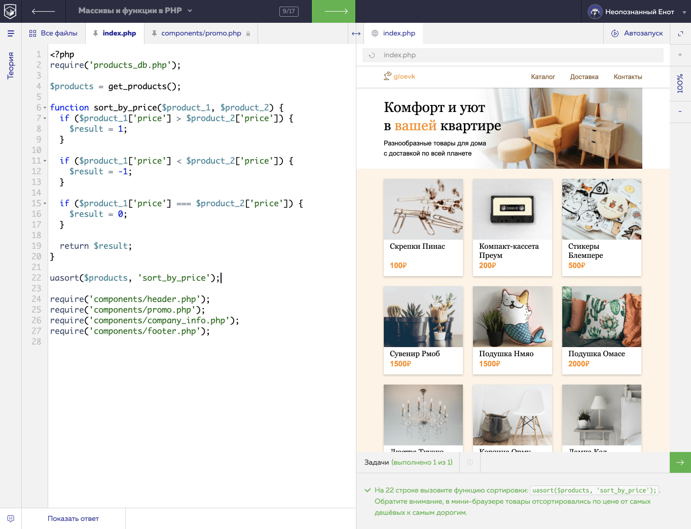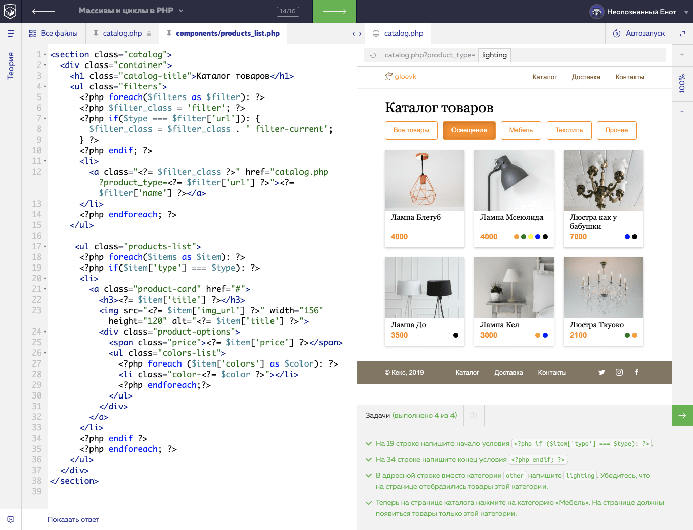 Знакомимся с синтаксисом PHP. Используем условия, массивы, циклы и другие базовые конструкции, чтобы запрограммировать интернет-магазин.